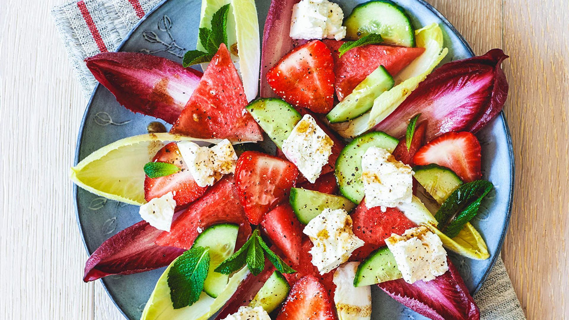 Y las ensaladas son una de las mejores formas de hacerlo, especialmente si se componen de frutas, verduras y hojas como la rúcula, la espinaca, la lechuga o el canónigo entre otras. Vamos a disfrutar de su frescor y al mismo timpo de sus texturas crujientes y sabores intensos. Juega con ellas y mézclas con otros ingredientes veraniegos y aliños que también nos aporten un toque de frescura.