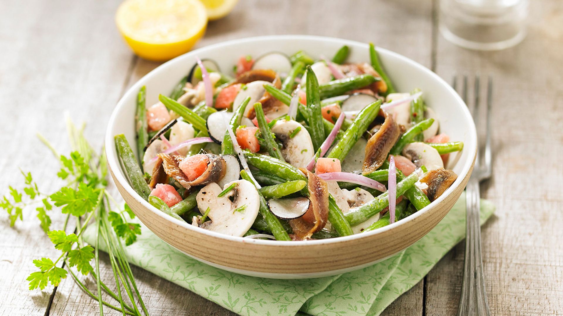 Con solo 22 calorías por cada 100 gramos de producto, su valor energético es especialmente interesante en las dietas enfocadas a la pérdida de peso. Además, aporta un buen número de minerales (potasio, fósforo, selenio, hierro...) y un sabor delicado, que recuerda a la tierra y a frutos secos, que funciona muy bien en distintas recetas: desde tortillas o revueltos, a cremas, es también muy versátil en platos de arroz o pasta, y otra forma en que nos gusta mucho también es como protagonista de ensaladas. Es el caso en el que hoy nos detenemos para preparar distintas ensaladas en cuya lista de ingredientes encontramos el rico champiñón.