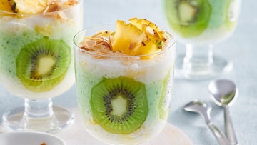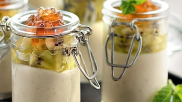 Pero además de al natural, también podemos incluir el kiwi a la hora del postre como ingrediente de infinidad de recetas. Es el caso de las que hoy proponemos, todas ellas además presentadas de forma muy 'pintona' en copas o vasitos de cristal. Para acceder a su modo de elaboración solo tienes que clicar en los botones de Leer más.