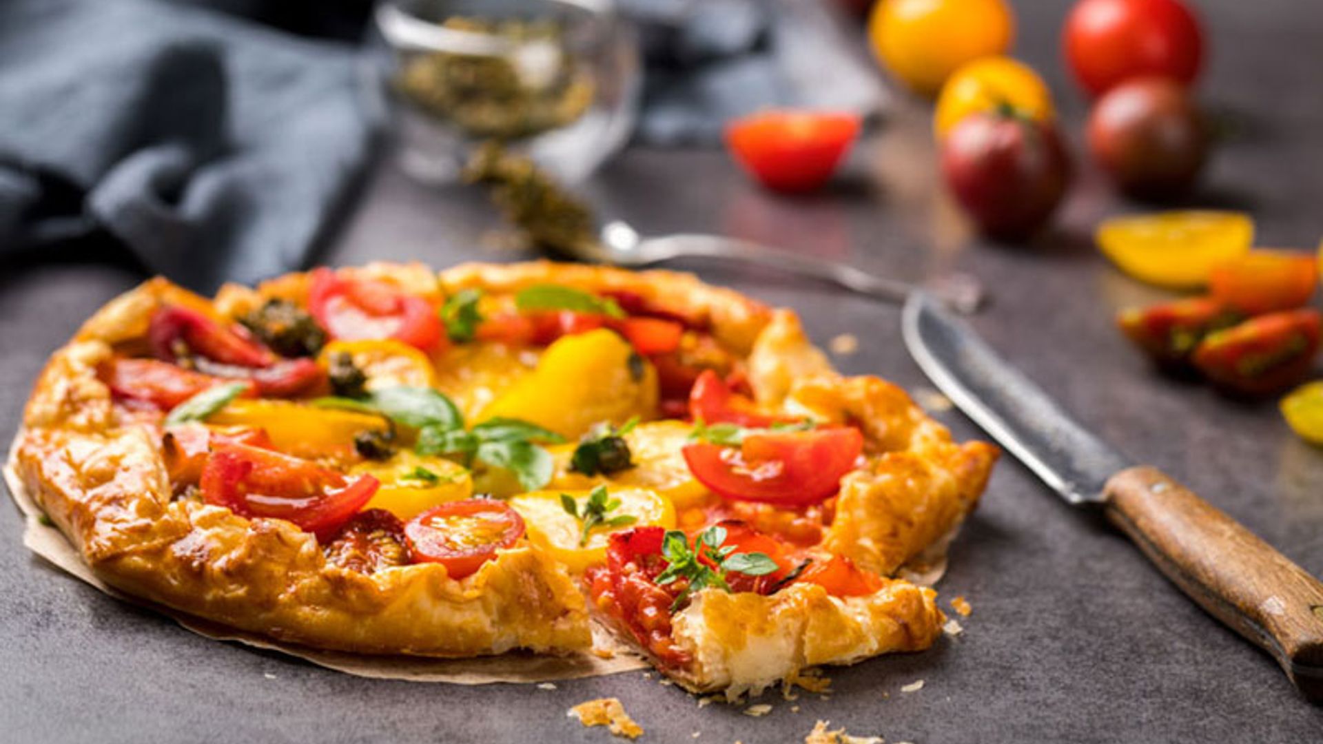 Uno de los usos más comunes cuando adquirimos tomates en invierno es su utilización como ingrediente de infinidad de ensaladas. Pero sus posibilidades culinarias van mucho más allá, y la que hoy os proponemos da como resultado recetas vistosas, calentitas y sencillas de hacer: las tartas saladas donde el tomate en ingrediente protagonista.