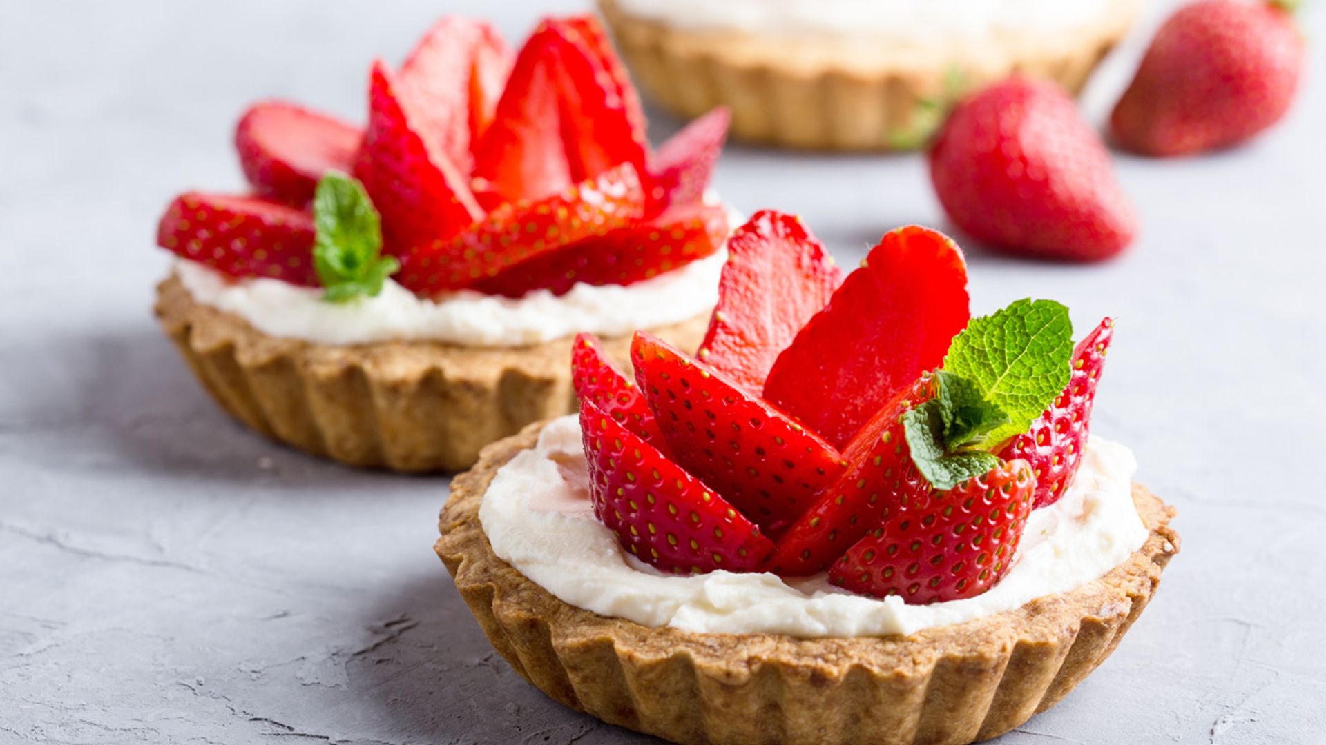 Hoy nos ponemos más golosos y vamos a alternativas que gustan por igual a pequeños y mayores: las tartas. Recetas de repostería en cuya lista de ingredientes no faltan las ricas y vistosas fresas, como estas que mostramos aquí debajo. Para acceder a su modo de elaboración solo tienes que clicar en los botones de Leer más.