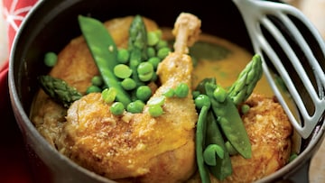 Las técnicas de cocina para prepararlo son también muy numerosas: a la plancha, al horno, al vapor, frito, en airfryer… Pero en este caso, no vamos a detenernos tanto en el modo, sino en el ‘con qué’. Y es que siempre es buena idea apostar por los alimentos de temporada, así que las recetas de pollo que hemos reunido a continuación tienen como factor común el uso de algunos de los ingredientes más propios de la primavera: espárragos, habas frescas, fresas, guisantes, judías verdes… Si te animas con alguna de ellas, puedes acceder a su modo de elaboración clicando sobre los botones de Leer más.