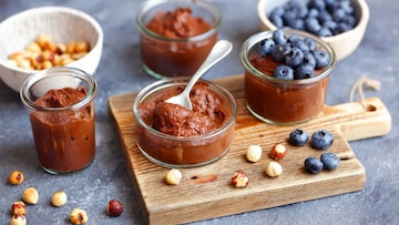 El abanico de ingredientes para hacer esta crema es bastante amplio, empezando por el cacao, que puede ser en polvo, pero también podemos usar chocolate en tableta, chips y otros formatos. Lo suyo es el negro porque es más saludable -sobre todo si no contiene azúcar y sí un gran porcentaje de cacao-, pero si te gusta más con leche o blanco, también te valen para hacer esta crema, aunque será menos sana.