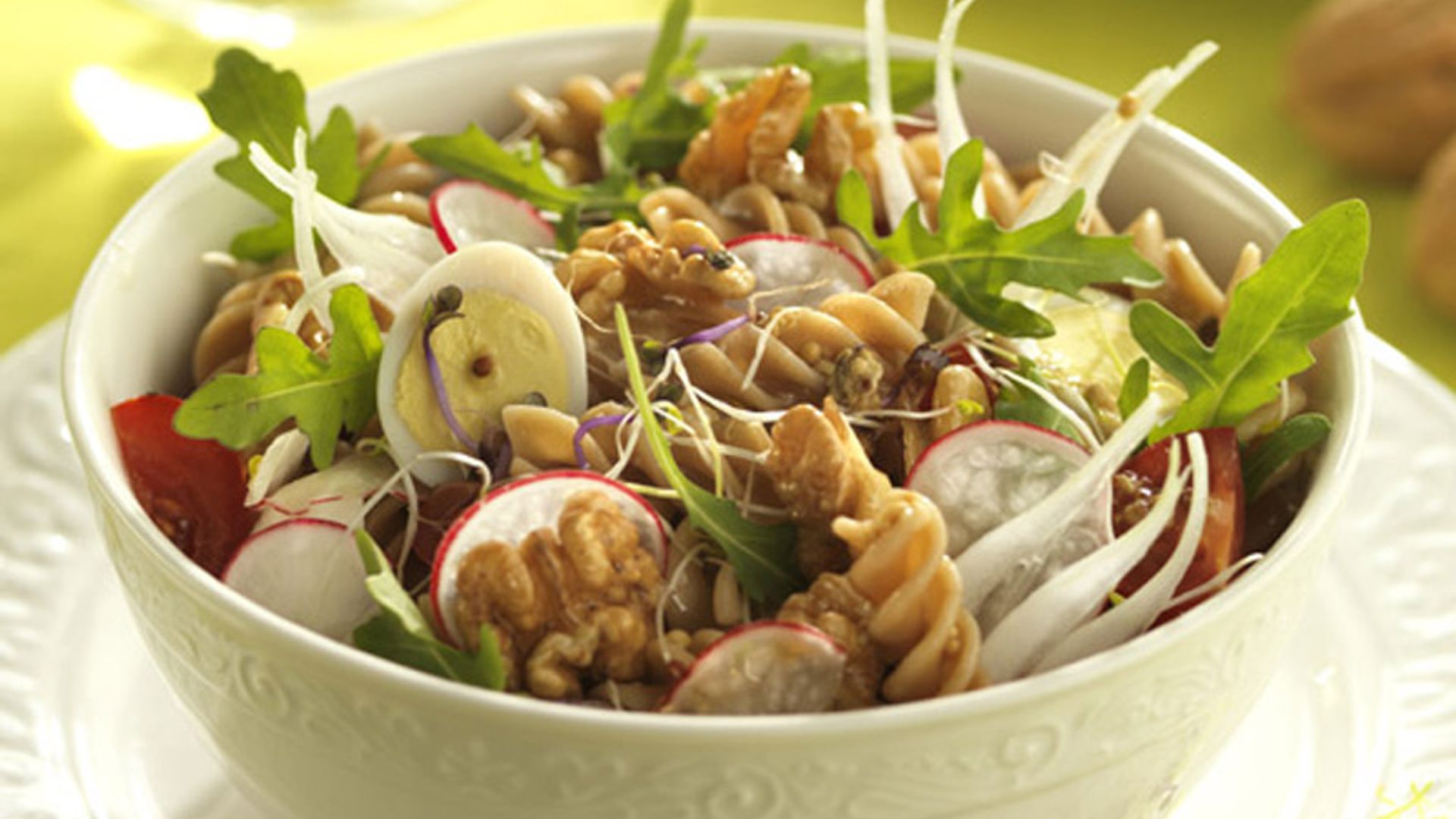 Dentro del término ‘ensalada’ caben prácticamente tantas recetas como personas las preparen. Y es que pocos platos aceptan tal cantidad de ingredientes. Si queremos llevar una dieta saludable debemos prestar atención a la elección de los mismos. Esto no quiere decir, ¡en absoluto!, que la lechuga y el tomate deban tener siempre el papel protagonista. De hecho, una ensalada se convierte en una opción perfecta -especialmente en las estaciones más calidas del año- para incluir distintos nutrientes y hacer de ella, si lo deseamos, un plato único, saciante y saludable.