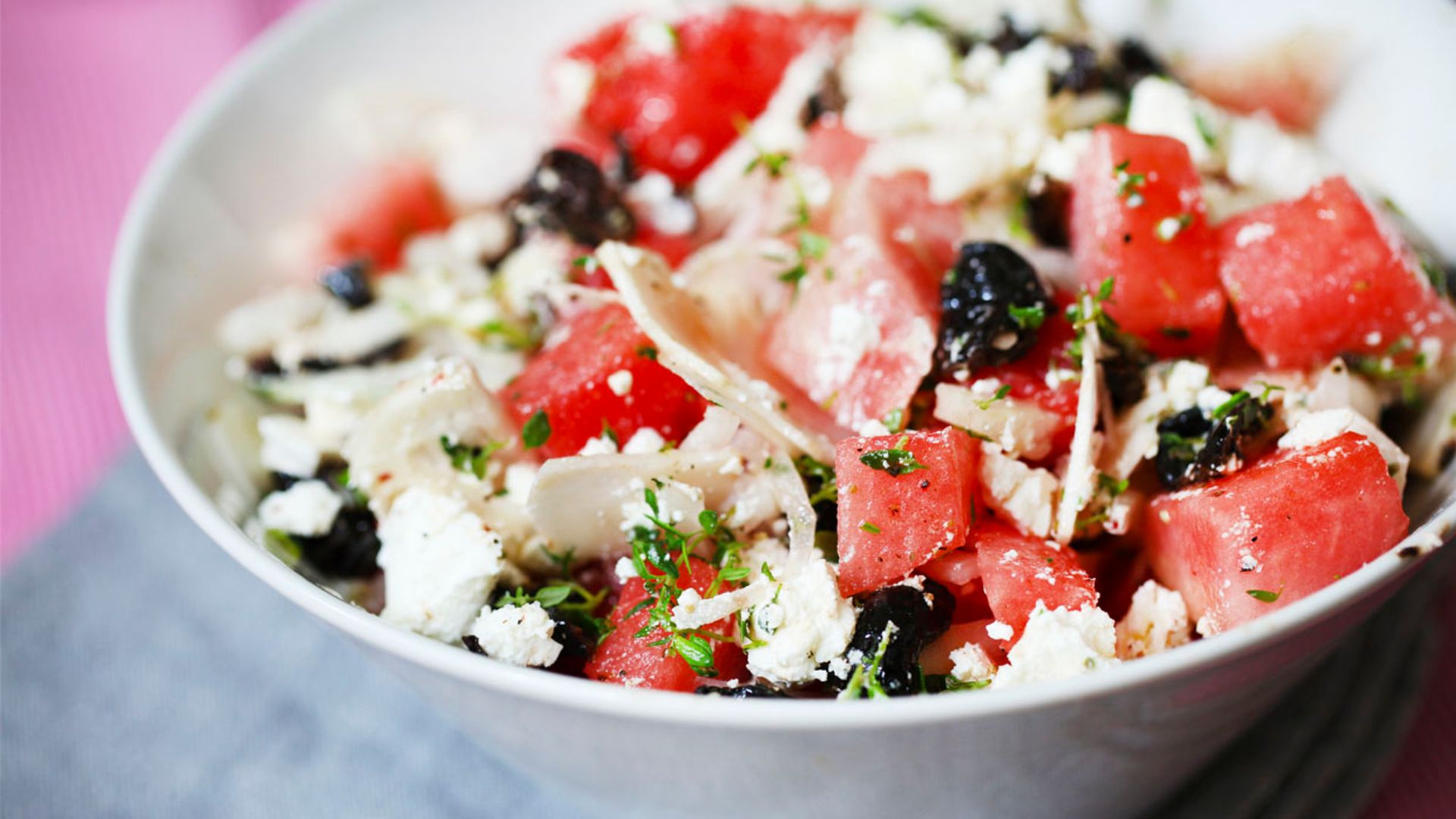 Un clásico estival que nunca falla. La combinación de la sandía y el sutil toque salado del feta resulta tan sorprendente como adictiva. Ideal para quienes buscan un plato rápido y lleno de sabor.