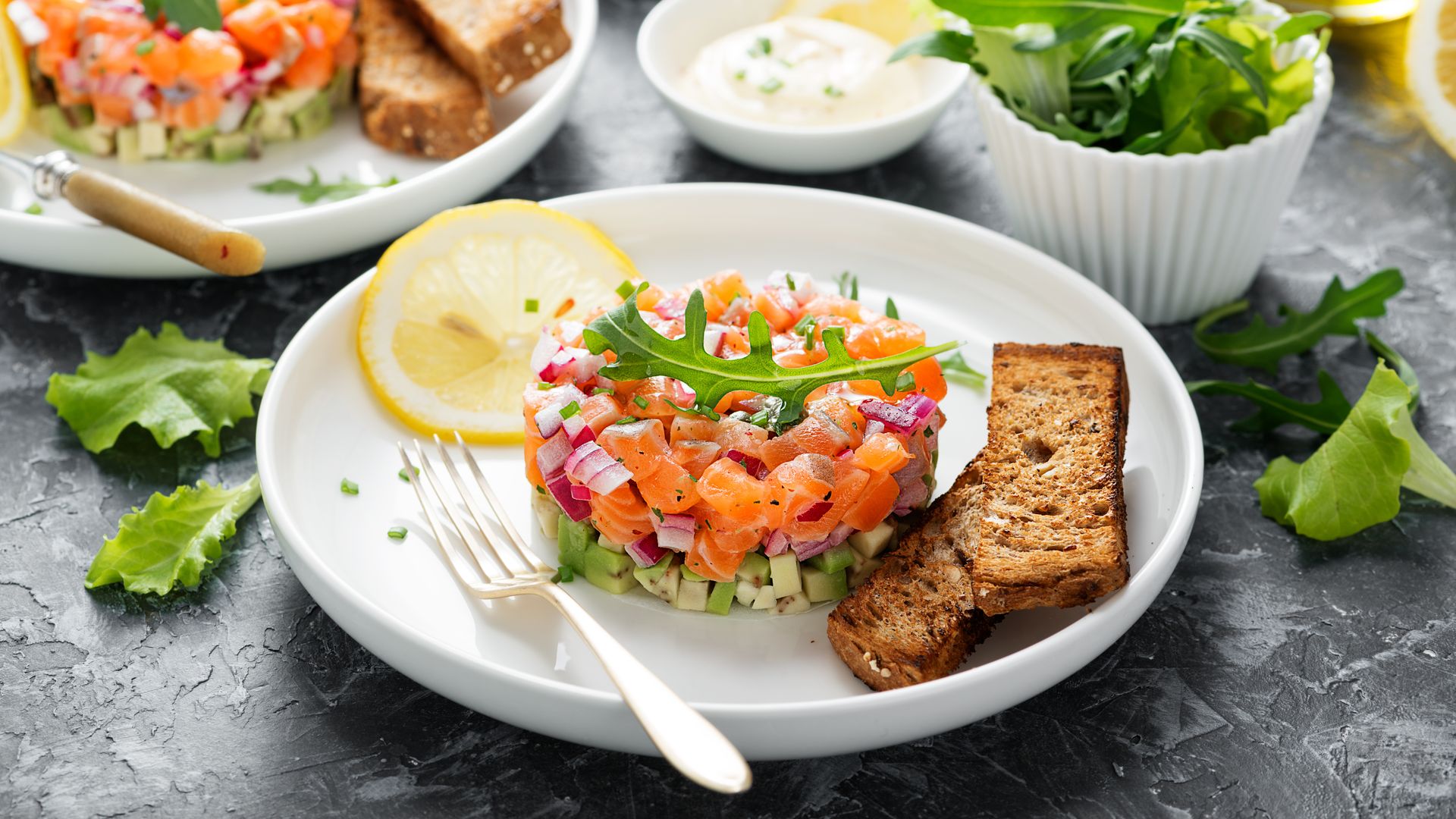 Así que, teniendo en cuenta las altas temperaturas propias de esta época de año, vamos a preparar un buen puñado de recetas en frío con salmón. En ensaladas, por ejemplo, funciona a las mil maravillas. Sin olvidar, claro, los sabrosos tartares (su combinación con aguacate en este tipo de recetas es una apuesta segura, pero podemos también innovar sumando frutas como mango, fresas… ).