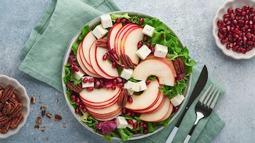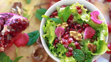 Aquí debajo os dejamos hasta 11 ejemplos de ensaladas entre cuyos ingredientes no falta la granada, perfectas para disfrutar de su sabor y todos sus beneficios durante estos meses. Para acceder a su modo de elaboración solo tienes que clicar sobre los botones de Leer más.