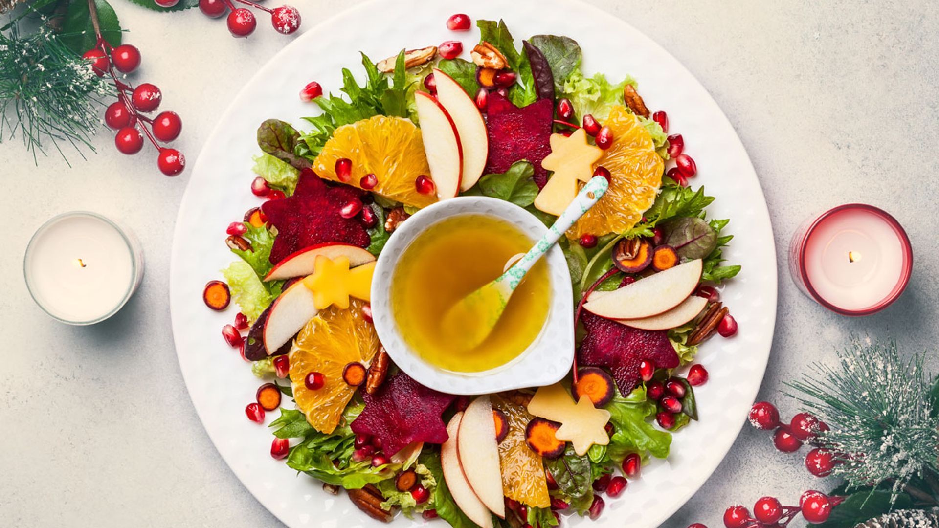 El terreno de los aliños resulta interesante, especialmente en Navidad, par salir del clásico ‘aceite, vinagre y sal’. Hay infinidad de productos que pueden dar lugar a ricos aliños: hierbas aromáticas, mostaza, ralladura de limón o de naranja, frutos secos picaditos, miel, yogur natural… Recuerda siempre, eso sí, que la intensidad del sabor de la vinagreta o de la salsa usada debe realzar el sabor de los ingredientes, no opacarlos. Si aun así optas por la vinagreta clásica, la proporción debe ser tres partes de aceite de oliva por una de vinagre y una pizca de sal.