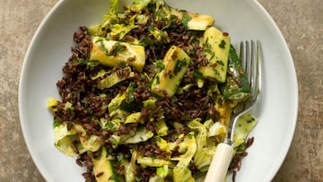 La textura firme del arroz integral -que además es más saludable y tiene un mayor poder saciante- contrasta aquí con la frescura del pepino y la piña y el ligero dulzor del maíz.