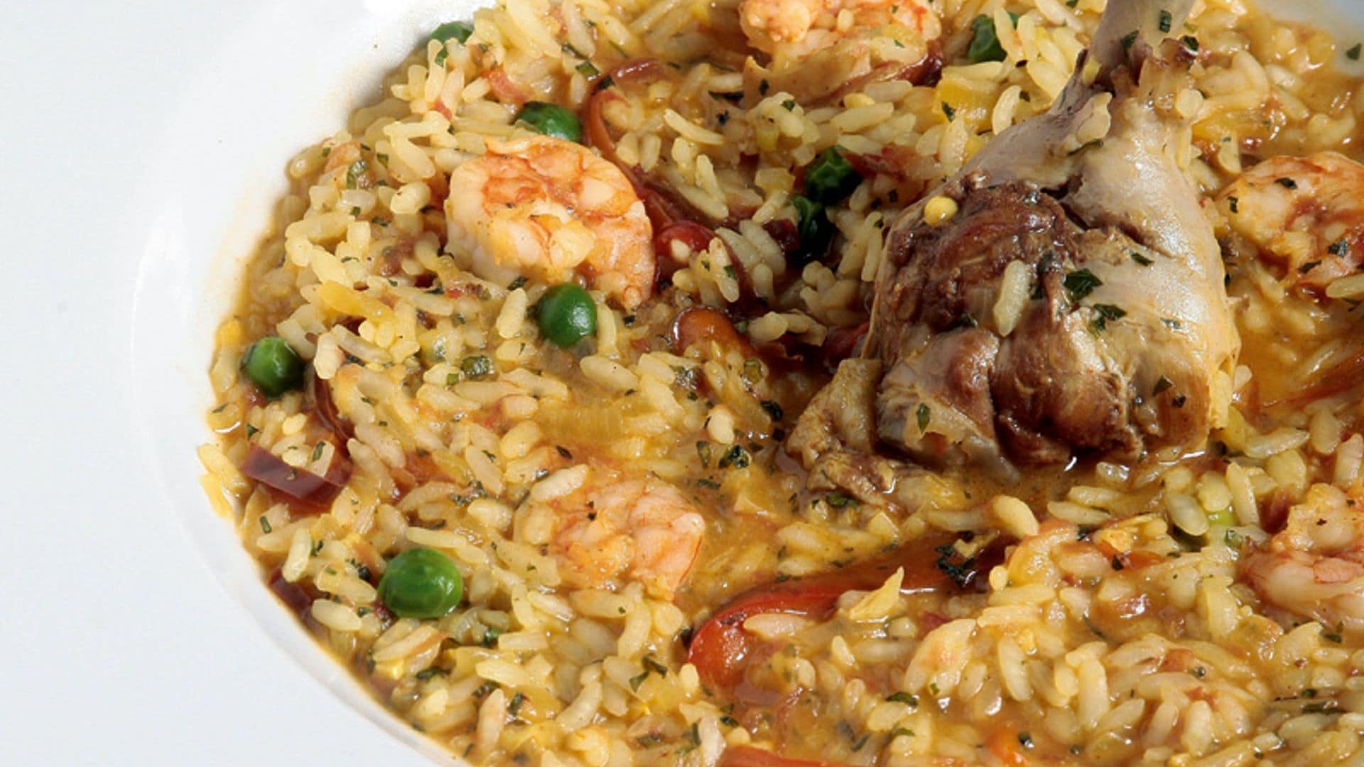 Arroz caldoso con gambas y pollo