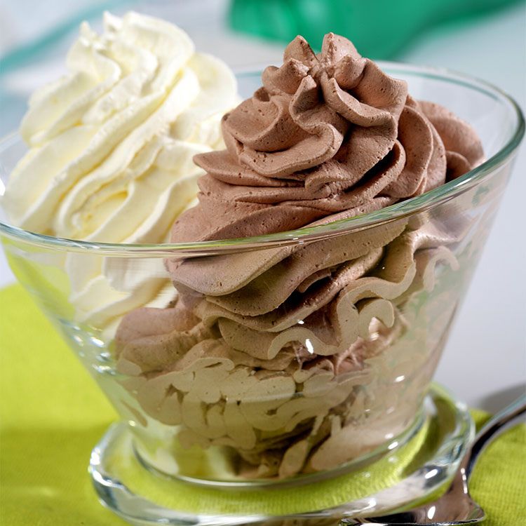 Servirlas con helado es una magnífica opción para las mousses. Te mostramos cómo preparar uno con sabor a leche merengada para acompañar a una mousse de chocolate a la que añadiremos nueces garrapiñadas.
