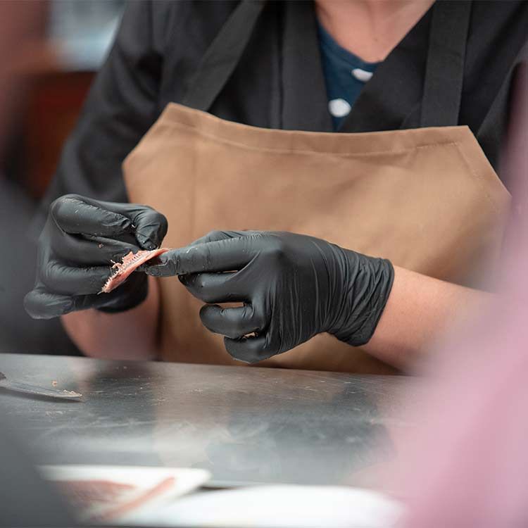 La limpieza o 'sobado' de anchoas es un trabajo artesano muy exhaustivo que se hace unidad a unidad de forma manual.