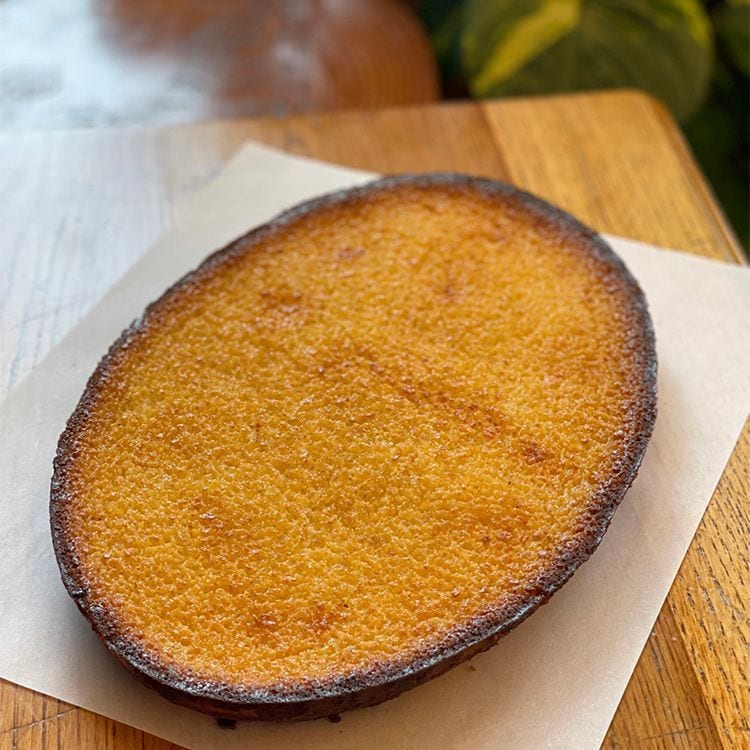 La quesada está tostada por fuera pero tiene el interior blandito y suave, aunque ligeramente compacto. Estas quesadas son las que elaboran en Casa Carral.