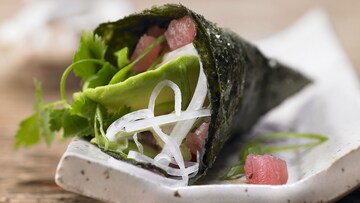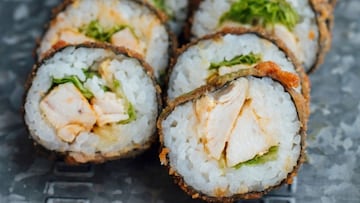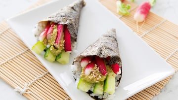 - No te olvides de la esterilla de bambú envuelta en papel film para enrollarlo, aunque solo se necesita en algunos tipos de sushi como el maki -que es el clásico rollito con el alga por fuera-; el uramaki -el alga queda en el interior, como en algunos California rolls; el futomaki -rollos más gorditos con varios ingredientes dentro- y el hosomaki -rollitos delgados con un solo ingrediente en el centro-.