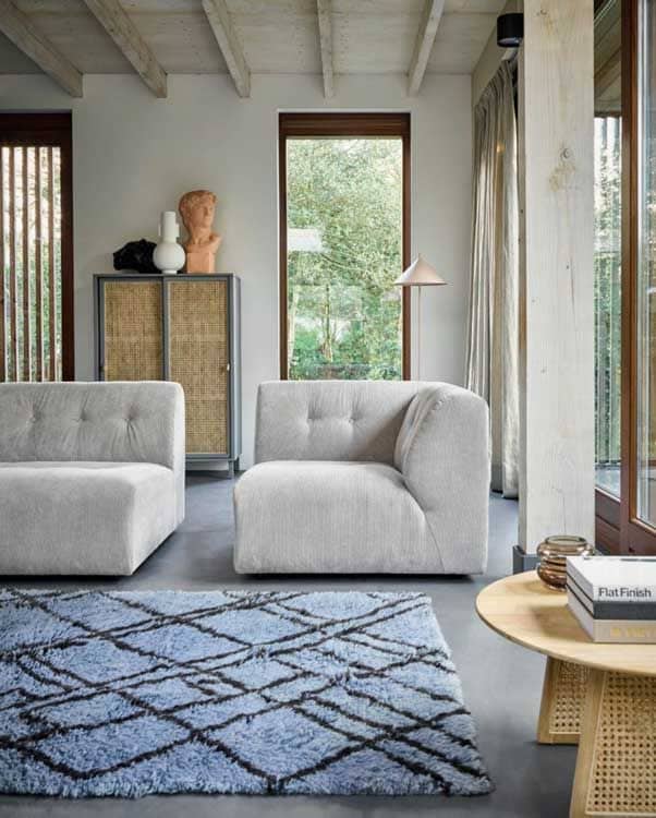 Sí a las texturas. Texturas variadas que generalmente aportan los textiles. Mezclar con tramas más que con estampados. No es frecuente ver motivos muy marcados porque la sencillez del minimalismo cálido se basa en superficies lisas. Pero sí se añade riqueza combinando diferentes texturas como lana, lino, algodón, madera, cemento… Aquí aparecen las fibras naturales, un acabado que no verías en un espacio minimalista en el concepto más extendido. Pero aquí sí se cuelan algunas piezas. También el papel en esa evocación a los espacios de inspiración japonesa que comentábamos.
