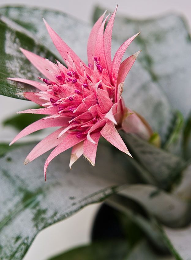 En el centro aparece una inflorescencia con brácteas de color rosa que durará varios meses, haciendo de tu aecmea una planta muy especial.