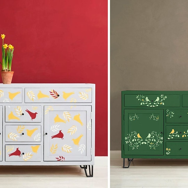 Además de decorar muebles de madera, también se pueden realizar trabajos de estarcido sobre otras superficies como azulejos, tela o sobre las paredes.