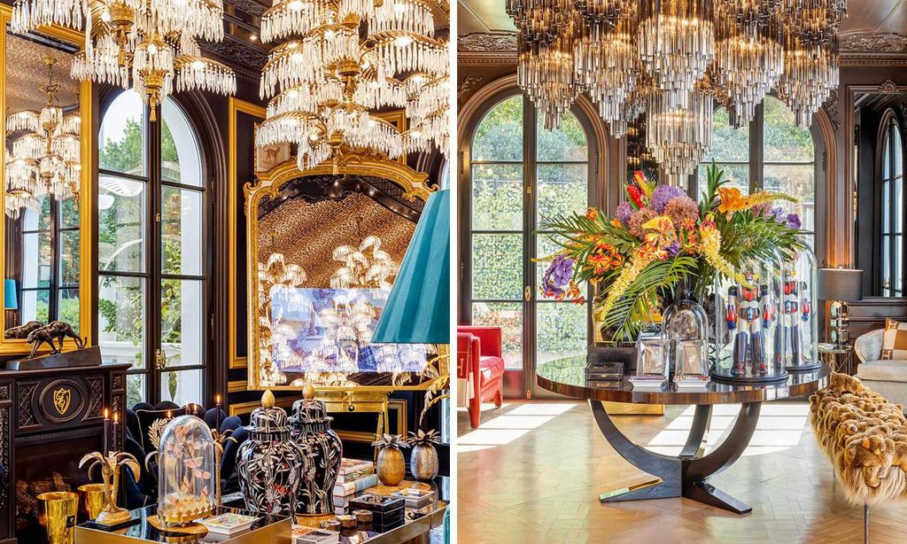 El dueño, Philipp Plein, es un hombre de mucho éxito, genial en su negocio, con visión abierta a grandes proyectos, muy atrevido y con mucha ambición. Sus casas reflejan un estilo maximalista, pero lo que fascina es la peculiar atención a cada detalle que el creador dibuja personalmente con su equipo. Y en la visión de su mundo estilístico el objetivo es dejar sin aliento tanto a sus clientes como a sus invitados. Un mundo excesivo que adora y que es el que vende a través de su marca de difusión mundial.