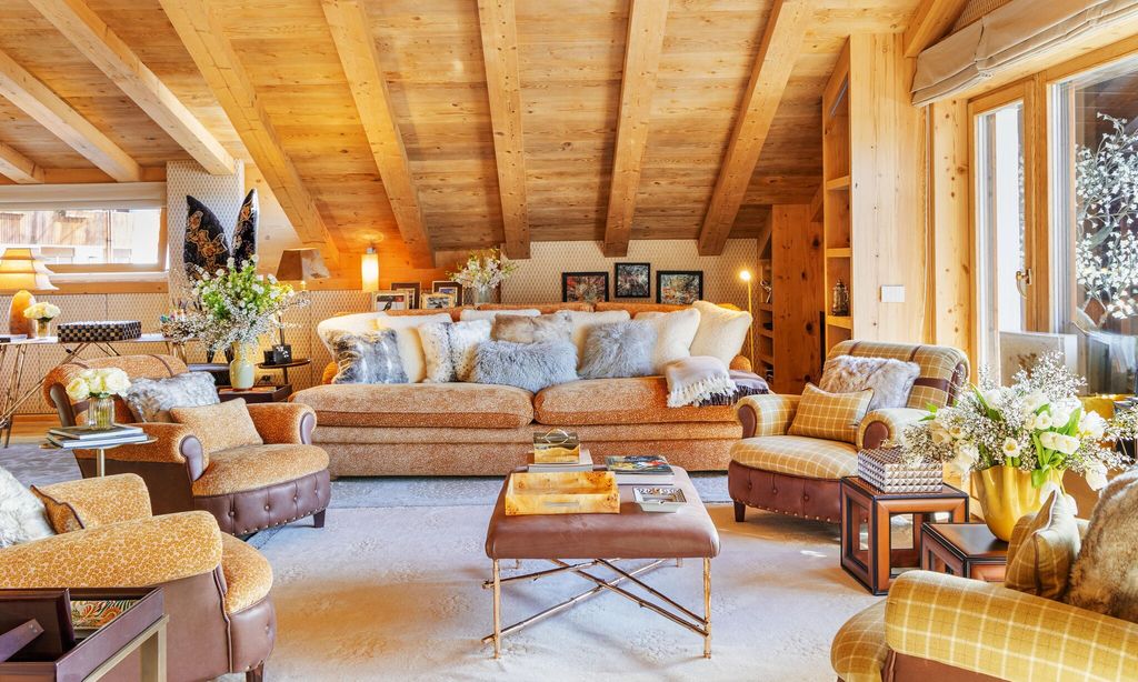 —Sí, desde esta casa inundada por el sol tengo una hermosa vista, impresionante, de Tofane y Cinque Torri. Es una mansarda (ático) en Cianderies, de 250 metros cuadrados, con terraza y cuatro dormitorios. La he renovado recientemente con una nueva decoración. Quería una casa muy acogedora. Había vivido muchos años en una casa tradicional de Cortina, así que, hace cuatro, decidí aclararla y hacerla más ligera, pero manteniendo el sabor de la montaña. Le di espacio a las telas, así que puse tela en las paredes para que, vayas a la habitación que vayas, parezca un abrazo. Utilicé cuero y piel. Mantuve algunas piezas antiguas, como la chimenea. Abrí el comedor, que estaba cerrado, y lo convertí en un espacio abierto, porque quiero que en cualquier rincón de la casa se respire esa luz maravillosa que entra por las ventanas, por el techo y por las ventanas laterales. He intentado combinar colores suaves para que se puedan disfrutar tanto en invierno como en verano. Yo diría que es una casa sofisticada, acogedora, luminosa, fácil de habitar y abierta a los amigos.