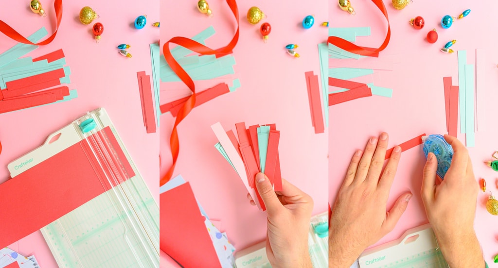 2. Toma cada tira y pega punta con punta para formar bucles.
