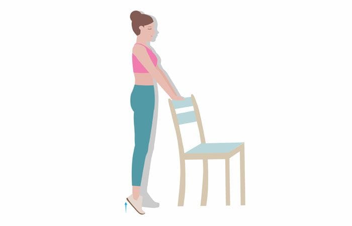 - Comienza levantando los talones del suelo, llevando toda la presión hacia las puntas de los pies.