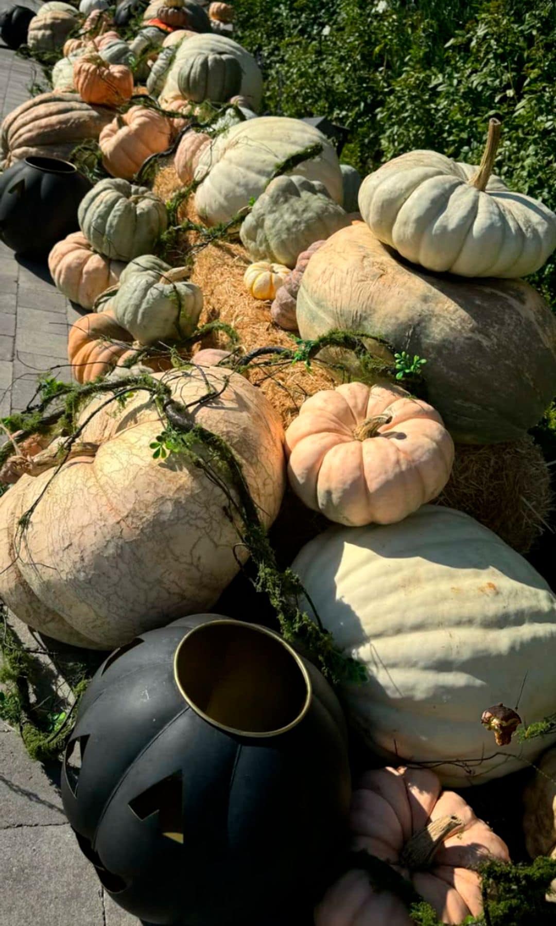 Este 2024 ha aportado por colocar dos grandísimos y altísimos esqueletos vestidos de traje de chaqueta de rayas diplomáticas, una idea que representa al personaje Jack Skellington de la famosa película The Nightmare Before Christmas inspirado en los dibujos de Tim Burton. Un imponente recibimiento, no apto para los miedosos, que no deja indiferente a nadie una vez que llegas a los pies de la escalinata de su mansión con jardín, que también está plagada de muchísimas calabazas de diferentes tonos y tamaños.