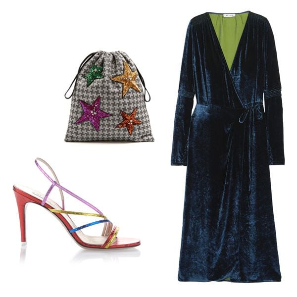 Las prendas de The Aticco tienen, como tantas otras firmas italianas, ese aire de nostalgia que se produce al mirar atrás y rememorar épocas pasadas. Una esencia de la que bebe el último vestido de la marca que Rosie ha elegido. Se trata de un vestido wrap, de largo midi y terciopelo azul petróleo, que recuerda a la elegancia natural de las divas de la época dorada de Hollywood. Está disponible en Net-a-Porter por 985 euros y la modelo, según muestra en su perfil de Instagram, lo ha combinado con sandalias de tiras (756€) y un bolsito de mano de la misma firma.