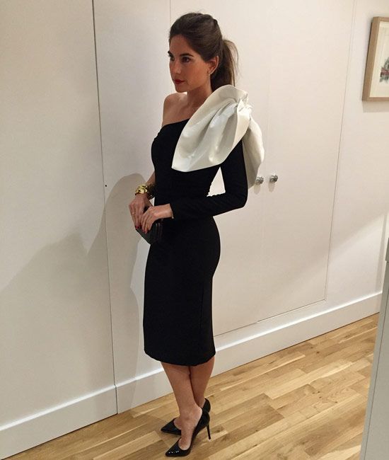 El look de invitada que las ha unido -a pesar de ser negro- tiene un toque especial que parece haber seducido a todas por igual. Un diseño ligeramente entallado que cuenta con un escote asimétrico y está adornado con un maxilazo blanco al hombro. Se trata del modelo Dora de Panambi y está confeccionado en crepe. Su precio es de 225 euros y en su caso la diseñadora lo ha combinado con un brazalete dorado, unos sencillos stilettos y un clutch negro. La prueba de cuando se trata de buscar el estilismo de invitada perfecto, a veces menos es más.