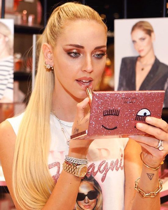 En estos multitudinarios eventos, Chiara ha querido tener un guiño con los productos de su línea y se ha vestido con tonos rosas de acabado metalizado o brillante, a conjunto con el packaging. Para su firma en la capital de nuestro país, ha plantado cara a la ola de calor con un minivestido de tirantes con detalles fruncidos en el pecho y cuerpo transparente decorado por adornos de tul obra de Philosophy di Lorenzo Serafini. Al preguntarle sobre su debut en una industria tan diferente a la que le hizo famosa, la italiana explica que está "súper emocionada porque es la primera vez que creo algo de belleza y ha sido algo increíble que ha tenido una gran acogida en muchos países".