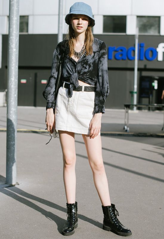 Si bien es cierto que el blanco destaca especialmente sobre pieles morenas y bronceadas, la principal normal de la moda es que no hay que acatar ninguna norma, algo que se refleja en el Street Style de París, donde estos diseños también se han colado en el armario de modelos de piel muy clara. En la fotografía superior, una de las tops que desfilaron en la Alta Costura parisina se decanta por este básico y lo combina con prendas en negro, como la camisa de estampado tie dye y las botas de inspiración militar.