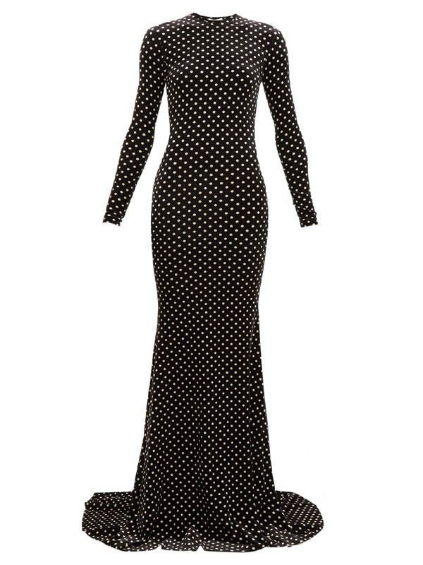 Vestido de terciopelo de largo XL de Balenciaga con silueta ajustada y manga larga (1.990 euros).