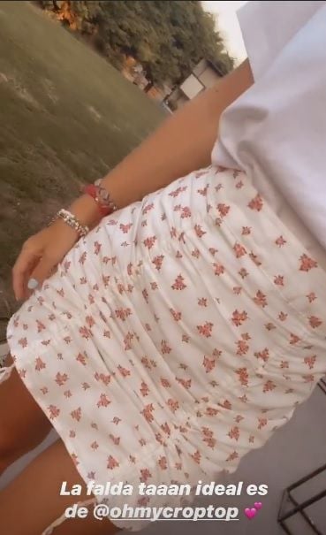 Aprovechando unos días de playa y desconexión con su marido y amigos, la influencer ya nos ha mostrado alguna de las prendas comodín que no faltan en su maleta de viaje. Sombreros de paja, bikinis de escote balconette, sudaderas con estampado tie dye o, cómo no, su pieza fetiche: las camisetas básicas (en esta ocasión un modelo blanco de manga corta), siendo estas últimas las que ha elegido para estrenar su nueva minifalda de Oh My Collection, cuyo precio actual es de 56,90 euros. Un diseño floral que cuenta con frunces en los laterales y dos tiras para ajustar la medida, por lo que tú decides si quieres mostrar más o menos centímetros de pierna. Sin embargo, esta no es la única ventaja con la que cuenta, puesto que gracias a los fruncidos se crea un juego de volúmenes que hace que las curvas se disimulen y -visualmente- consigas el 'efecto vientre plano'.
