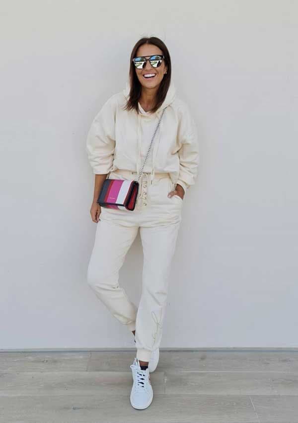 Esta misma mañana, la actriz ha acudido a hacer la compra acompañada de su hija Daniela. Una tarea de lo más cotidiana para la que Paula ha apostado por una estética relajada, con un chándal blanco perteneciente a la nueva colección de su firma. Se trata de un conjunto compuesto por un pantalón tipo jogger con cintura alta ajustable y fruncido en el bajo, y una sudadera cropped con capucha, su truco infalible para combatir el mal tiempo, ambos confeccionados en un tejido de algodón. Aunque su barriguita ya se empieza a notar, Paula ha decidido llevar la sudadera ligeramente por dentro del pantalón, uno de los trucos de las expertas para estilizar la figura.
