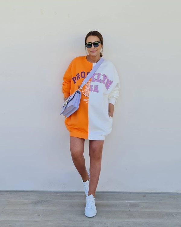 De hecho, hoy mismo, compartía este otro look en sus redes con esas mismas zapatillas. También el bolso lila -de Pinko- es el que ha llevado a su visita al centro de belleza, aunque lo ha lucido en la mano en vez de cruzado como bandolera. Lo que no tenía nada que ver es la prenda protagonista del estilismos: si aquí la veíamos con una original sudadera college de Bershka a modo de vestido, en la calle ha preferido el minivestido de flores. Dos looks muy diferentes que demuestran la versatilidad de un bolso especial y unas zapatillas blancas.