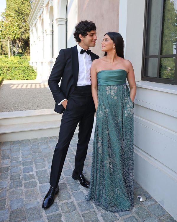 Como mencionábamos al comienzo, por primera vez este look italiano vio la luz durante la pasarela primavera-verano 2023 el pasado mes de septiembre en la capital milanesa. Y no, aún no está disponible para su compra en tienda, por eso María es una de las grandes afortunadas en llevarlo antes que nadie. Tal protagonismo tiene el atuendo, que simplemente ha añadido unos pendientes colgantes de diamantes de la casa Rabat y su incondicional larga melena lisa. Tomás por su parte ha lucido un sofisticado traje de chaqueta con pajarita negra de la marca parisina Fursac, ¡estaban guapísimos!