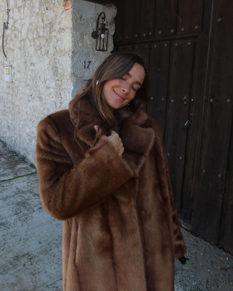 María comparte varias imágenes: una bonita mesa puesta, un bol de patatas fritas (su comida favorita)... Y dos en las que se ve su look, un estilismo compuesto de básicos. La influencer ha lucido un jersey gris con cremallera, una prenda que no falla en invierno, y un pantalón negro y ancho. Pero sin duda es el abrigo el que más ha llamado nuestra atención. Se trata de un diseño de pelo sintético de color marrón de la firma francesa LE:APT. Se trata del modelo Long Mink Faux Fur Coat, disponible en dos colores (este y blanco) por 429 euros. Una prenda que la ha unido con algunas de las prescriptoras de moda más estilosas de Europa. Y es que, hasta la fecha, ya hemos visto con este diseño a Claire Rose Cliteur, afincada en Londres, con más de 1,3 millones de seguidores en su perfil, y a la francesa Marine Diet. ¿Lo más llamativo? Que las tres lo han combinado de una forma similar: con básicos.