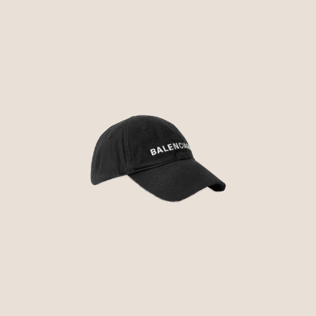 Gorra de béisbol en sarga de algodón negro desgastado con bordado de logo a contraste, de Balenciaga en Net-A-Porter (350 245 euros).