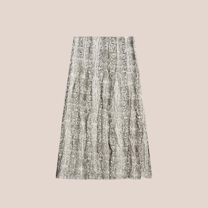 El animal print llega este verano de forma sutil y elegante, con esta falda de Massimo Dutti, de largo midi con vuelo y efecto arrugado (89,95 euros). Funciona bien con looks modernos de oficina, para no pasar calor, como por ejemplo con una camisa y unos mocasines. También con una camiseta de tirantes y unos botines para una tarde compras.