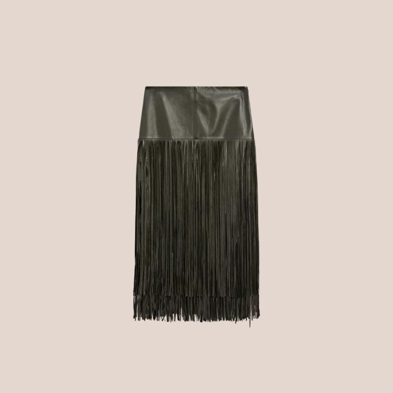 Otra tendencia de la temporada son los flecos, que evocan al estilo bohemio y encajan genial en verano tanto para el día a día como para festivales o planes de noche. Esta falda de Massimo Dutti de piel con flecos (299 euros) aporta movimiento a las figuras rectas.