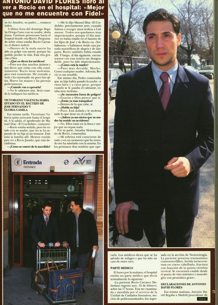 Rocío Jurado estaba en la finca Yerbabuena , en Sevilla, cuando se enteró de la noticia. Un día antes, había celebrado el bautizo de sus hijos, José Fernando y Gloria Camila. Fue Pedro Carrasco quien la llamó para avisarle. Rápidamente, la cantante y su marido, José Ortega Cano, cogieron un tren a Madrid. ‘La más grande’ no se separó de su hija en ningún momento durante su convalecencia.