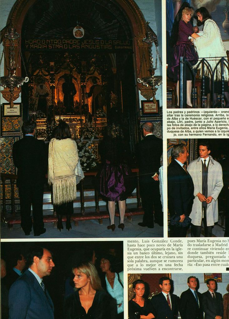 El bautizo despertó mucho interés en Sevilla, haciendo que numerosos ciudadanos se acercaran hasta las puertas de la parroquia de San Román, engalanada para la ocasión con margaritas, claveles, rosas y gladiolos, para poder seguir bien de cerca todos los detalles de un acto religioso que congregó a numerosas personalidades. Desde la representantes de la aristocracia de nuestro país, como Carlos Falcó, el recordado marqués de Cubas, o Rafael Medina, duque de Feria, hasta de la política, como fue el caso de José Rodríguez de la Borbolla, expresidente de la Junta de Andalucía, o el entonces alcalde de Sevilla, Manuel del Valle, que regaló al pequeño un precioso broche de oro en representación de la ciudad del Guadalquivir. Nadie se quiso perder este bautizo que fue oficiado por Pedro de Solís Atienza, tío de su madre, Matilde Solís, que también se encargó de concelebrar su boda con el actual duque de Alba.