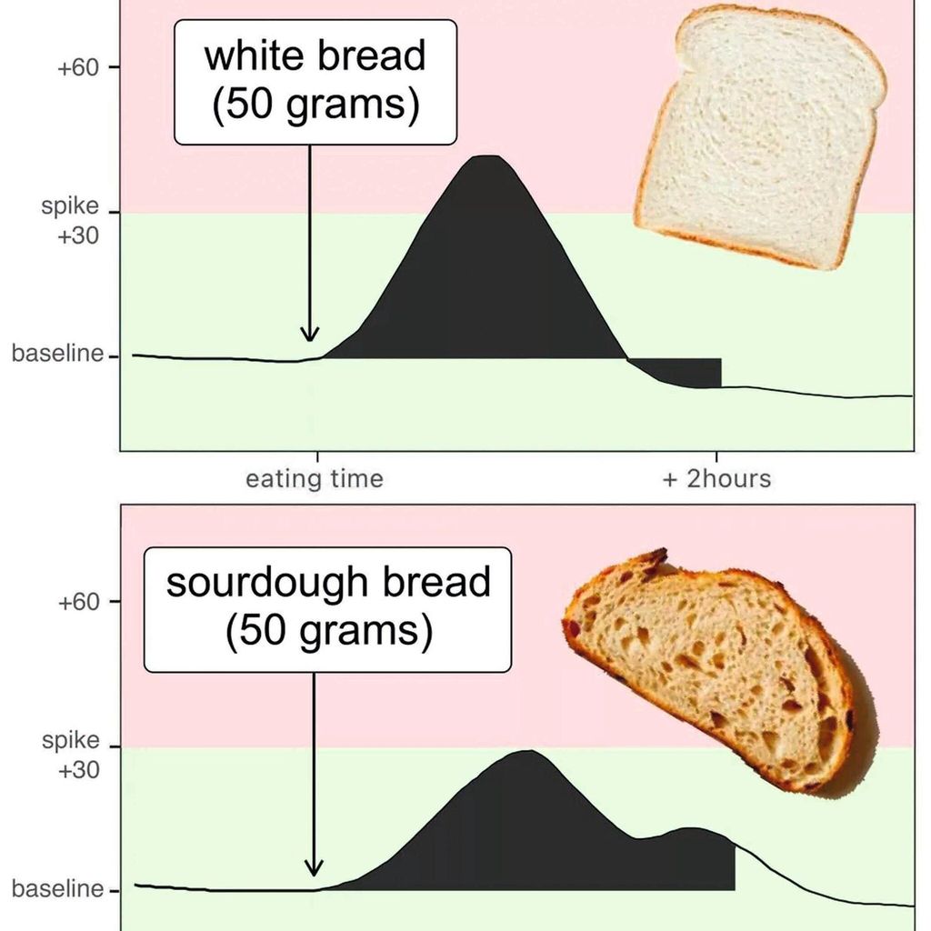 - Pan blanco vs pan integral: El pico de azúcar es mucho mayor en el primer caso.