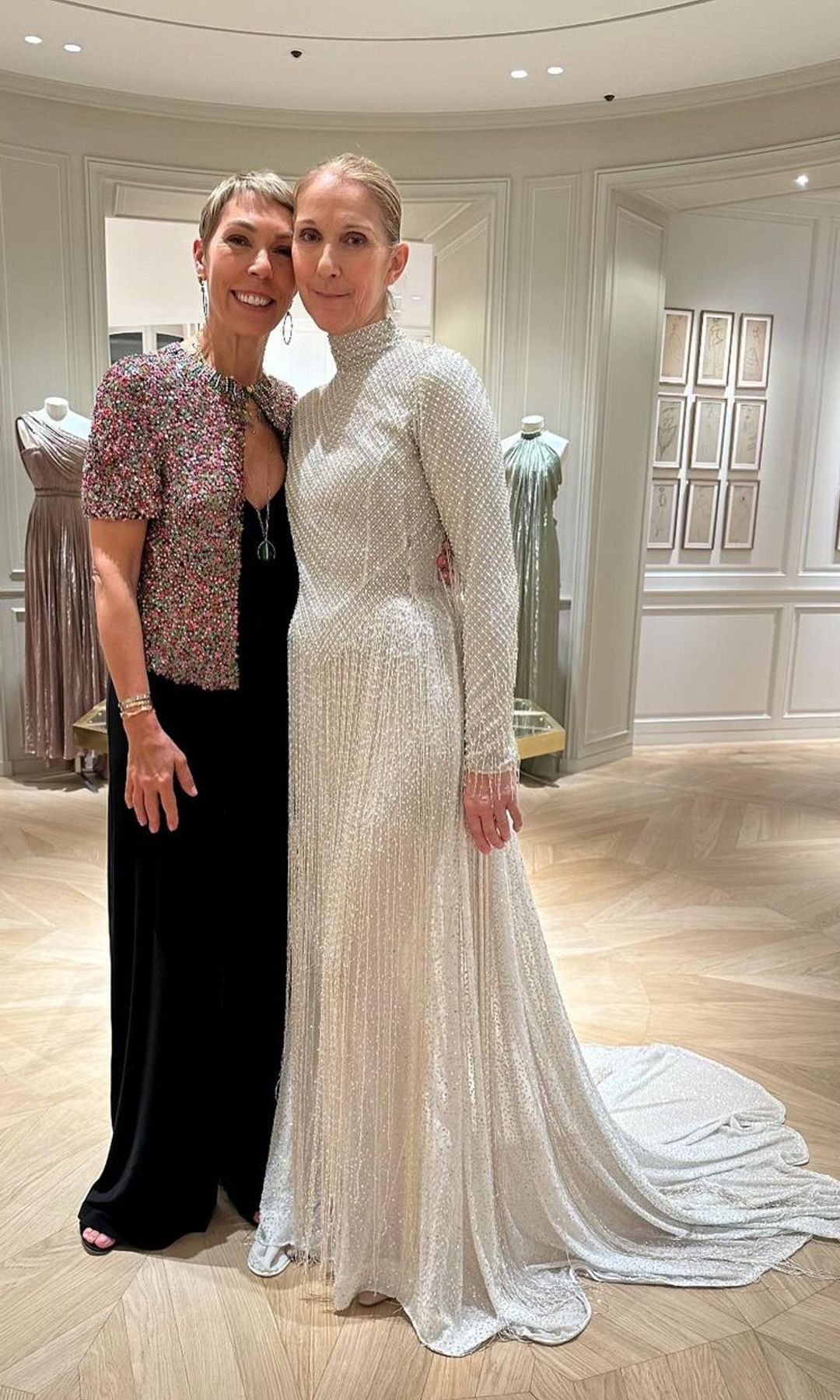 Tras un parón de años provocado por el síndrome de la persona rígida que sufre, Céline Dion volvió a los escenarios y lo hizo por todo lo alto, iluminando la también etiquetada como la Ciudad de la Luz con un impresionante diseño Alta Costura de Dior. La cantante canadiense interpretó Hymne à l'amour de Édith Piaf enfundada en un vestido largo de georgette de seda blanca impulsado por Maria Grazia Chiuri. Una obra repleta de perlas y lentejuelas de cuello alto y con cola que la convirtió en el gran foco de atención de la noche.