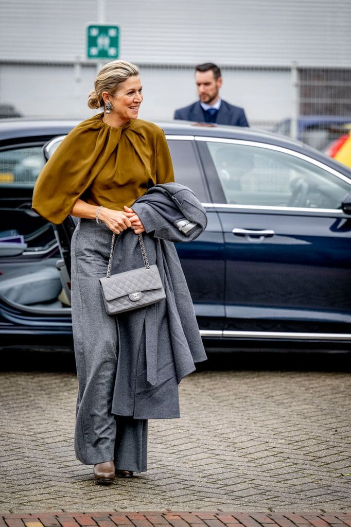 Bolso de Chanel en mano, la mujer del rey Guillermo Alejandro de Países Bajos ha llegado a una de las 20 sedes de SVO Food Vocational Training, concretamente la de Houten, vestida con el perfecto look de trabajo para el invierno. Y eso que estaba a punto de ponerse los guantes para recibir una breve lección de cocina por parte de los profesores y estudiantes del centro.