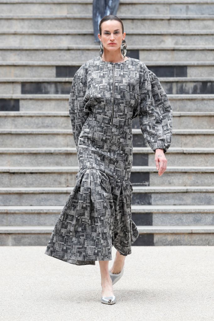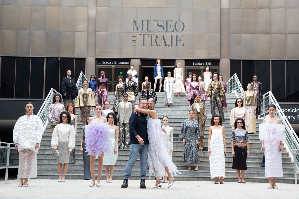 Tampoco pienses que se ha ido demasiado lejos o que nos resulta extraño el escenario del desfile. Ha citado a sus invitados, entre amigos, prensa y clientes de toda la vida, en el icónico Museo del Traje, siendo su imponente escalinata principal la piedra angular de un espectáculo que reivindicó la belleza femenina en la diversidad.