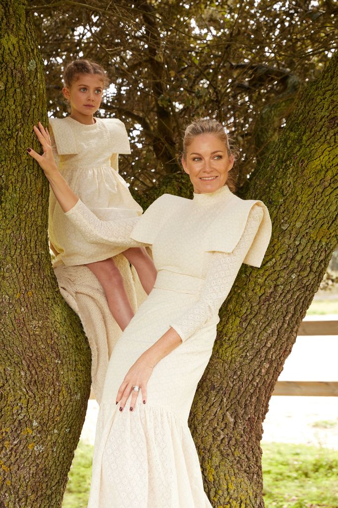 La nueva línea conjunta destaca por su selección de tejidos de alta calidad, entre los que predominan el lino y el algodón. La paleta cromática se mueve entre tonos empolvados, rosas y burdeos que se mezclan con los clásicos crudos, evocando la sofisticación de la infancia con un aire muy british. Los diseños incluyen volantes, lazos, perforados y detalles bordados, en una colección que apuesta por la elegancia natural. Cada prenda refleja la esencia de ambas marcas: la fusión entre la dulzura de la infancia y un estilo atemporal, creando piezas diseñadas para acompañar a madres e hijos en su día a día sin renunciar a la individualidad de cada uno.
