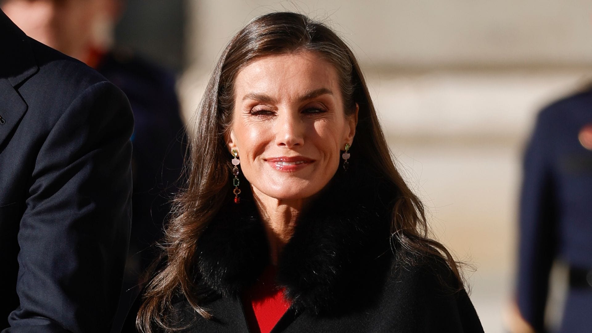 A pesar del sol radiante, esta mañana las temperaturas son muy bajas en Madrid, por lo que necesitaba resguardarse del frío. A su llegada al Patio de la Armería, ha derrochado elegancia envuelta en un fabuloso diseño de paño, una capa negra con silueta asimétrica y cuello de pelo sintético que aporta una dosis extra de sofisticación a cualquier estilismo. Tal es su versatilidad que la Reina la ha llevado tanto en eventos formales como en actos de trabajo del día a día, viajes oficiales o recepciones institucionales como la de hoy. De hecho, se la hemos visto nada menos que 17 veces, a las que hay que sumar las tres que la ha llevado en camel y otras dos en azul marino.