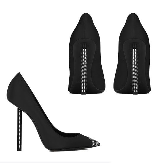 Los zapatos elegidos para la ocasión son el modelo Tower 110 en satén negro. Se pueden adquirir en la web online de Saint Laurent (tanto en este color como en fucsia o blanco). Sorprende el tacón no por sus casi 11 centímetros sino por su originalidad, ya que simulan un altísimo rascacielos. El diseño además presenta delicadas aplicaciones de cristal y pudimos verlo anteriormente en la red carpet de los pasados BRIT Awards 2018 porque los llevó Rosie Huntington-Whiteley en su versión con pulsera.