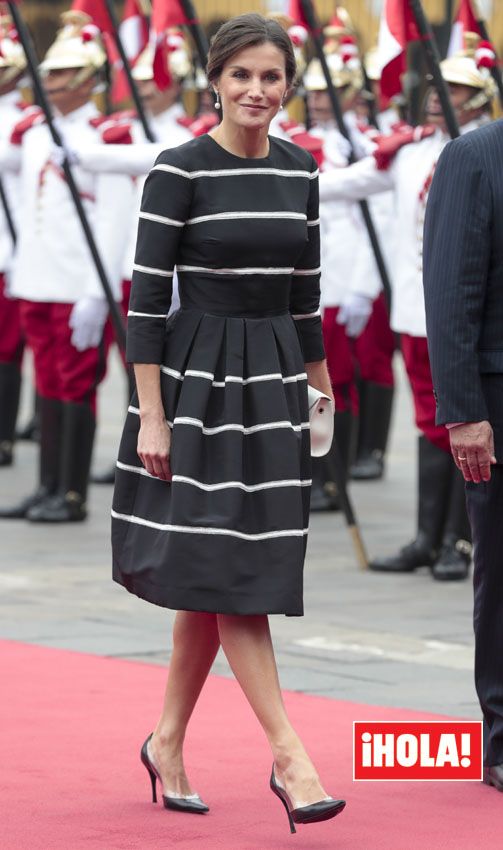 La semana pasada se conocía la noticia de que los Reyes iniciarían hoy una visita de estado a Perú algo rápida, ya que tan solo van a estar dos días en este país que ya visitaron en 2010 cuando aún recibían el trato de Príncipes. El primer acto al que han acudido doña Letizia y Felipe VI como parte de su apretada agenda ha sido una ofrenda floral en el Panteón Nacional de los Próceres, tras lo que se desplazarán al Palacio de Gobierno, donde serán recibidos por el presidente de la República del Perú, Martín Alberto Vizcarra, y la primera dama, Maribel Carmen Díaz. En este día repleto de compromisos, la Reina ha hecho gala de su elegante estilo y ha estrenado un diseño que sigue dos de sus fórmulas de estilo preferidas con el que potencia su figura, enmarcandola en la parte superior y agregando volumen en la inferior.