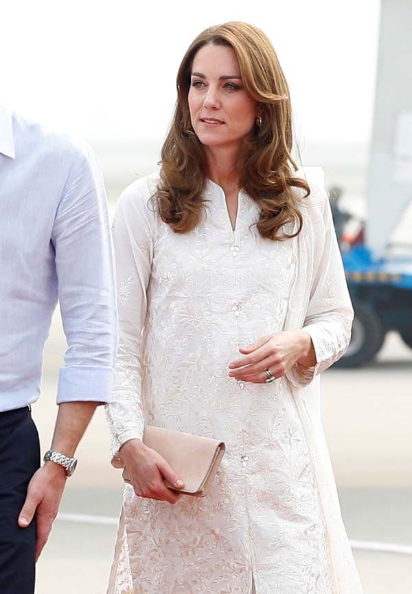 Hace exactamente un año, el 17 de octubre de 2019, llegaron a Lahone para tener un encuentro con el Gobernador, cita en la que la Duquesa triunfó con un shalwar kameez. Este tipo de conjuntos tradicionales de Asia del Sur y Asia Central, -que también llevó su suegra, Diana de Gales, en sus visitas a Pakistán-, se componen de una camisa larga y pantalón a juego y pueden ser usados tanto por hombres como por mujeres. Hoy, Kate vuelve a rendir homenaje a este país al ponerse de nuevo uno de estos estilismos, aunque ha generado algo de confusión entre sus seguidores, puesto que algunos afirman que se trata del mismo que llevó en aquella ocasión, obra de la casa paquistamí Gul Ahmed, mientras que otro defienden que es uno nuevo.